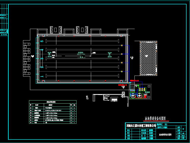 另有濾料,毛發(fā)收集器,配電柜,各種水口,扶梯,水下燈,管道輔材等若干。