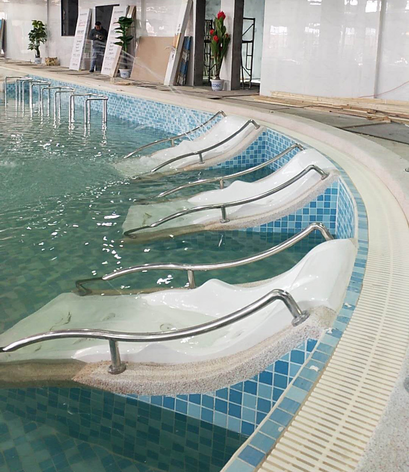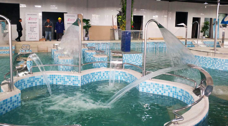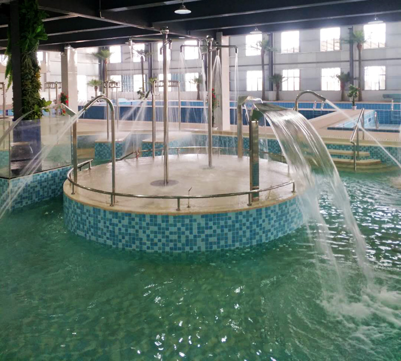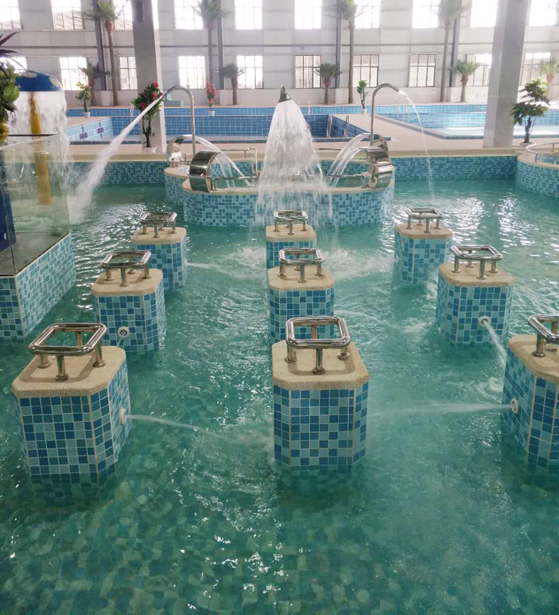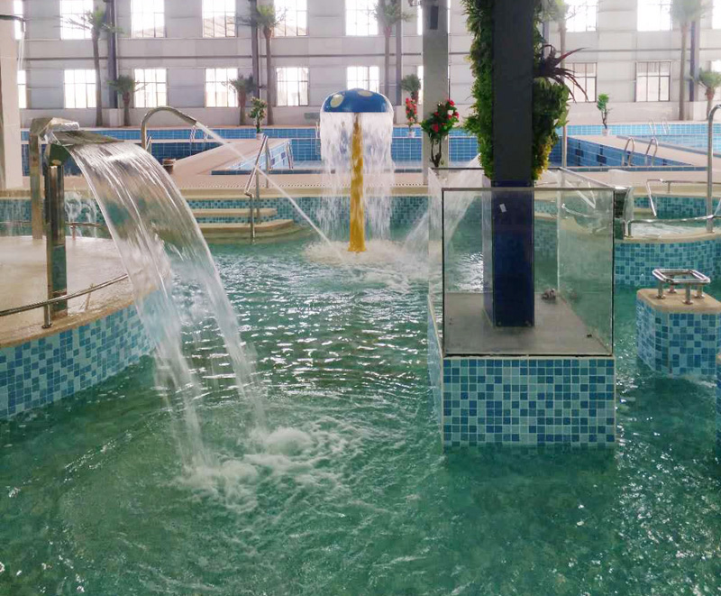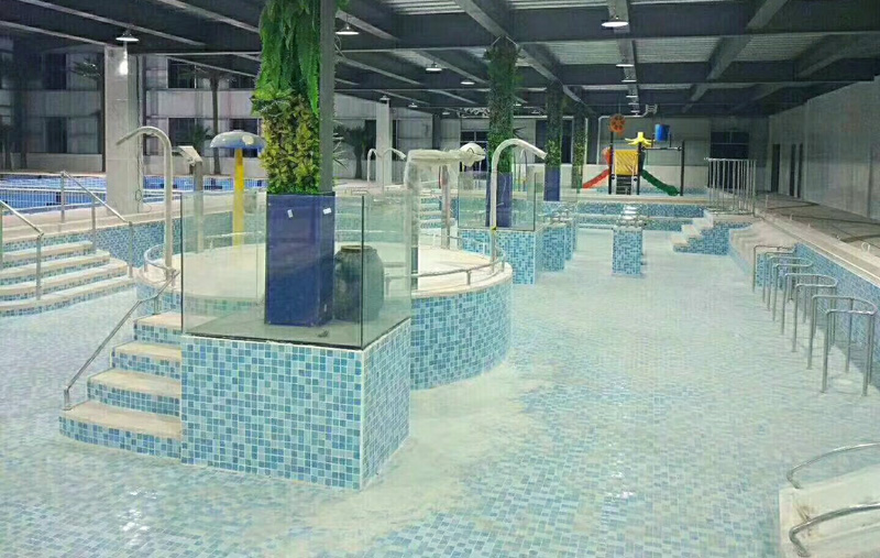 ????? 2016年12月,我公司很榮幸承接到江西吉安吉州區(qū)99體育園泳池設(shè)備工程項(xiàng)目。本項(xiàng)目位于吉州區(qū)奧體運(yùn)動(dòng)中心99體育園,體育園內(nèi)有籃球館,足球館,乒乓球館等,其中游泳池,戲水池, SPA池,蒸房則交由我公司承辦。本項(xiàng)目一共六個(gè)池子和三個(gè)蒸房。其中兩個(gè)成人池,兩個(gè)兒童池,一個(gè)戲水池和一個(gè)SPA池,一個(gè)干蒸房,一個(gè)濕蒸房,一個(gè)蒸汽房??梢酝瑫r(shí)為大人和孩子提供愉快的游泳戲水和水療環(huán)境。???????????????????????????????????????