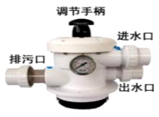 5,閥體標有“進水口”的管口同水泵相連接,返回泳池的管道同控制閥標有“出水口”管口連接,控制閥標有“D”管口同排污管道連接。