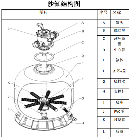 3,要求填裝正確級別和重量的濾砂(直徑5mm以上石英砂)填裝時,須將中心管平穩(wěn)放置于腔體內(nèi)中心位置,濾砂的表面應(yīng)該在過濾器腔體中間。
