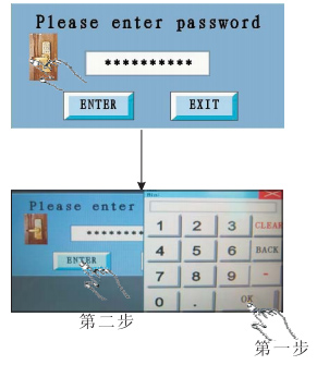 (3)當(dāng)首次上電進(jìn)入上電待機(jī)面10秒后觸摸屏幕就會(huì)進(jìn)入如圖所示的開機(jī)密碼界面: