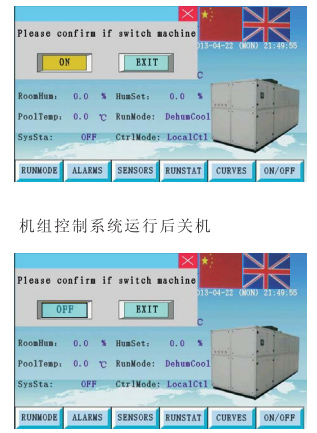 當(dāng)選擇了手動(dòng)模式后系統(tǒng)會(huì)按選定的模式運(yùn)行。選定手動(dòng)模式也要設(shè)定目標(biāo)參數(shù)。當(dāng)選定要首先開啟的模式后,系統(tǒng)會(huì)先運(yùn)行選定的模式。運(yùn)行一段時(shí)間檢測達(dá)到目標(biāo)后會(huì)自動(dòng)按設(shè)定的參數(shù)運(yùn)行。