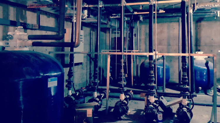 3、各自的回水管應(yīng)盡量高出均衡水池水面300-400mm;